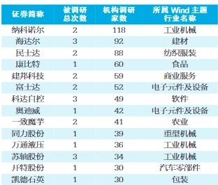 此外,康比特、建邦科技、富士达等公司均迎来超过50家机构调研,赴科达自控、奥迪威、一致魔芋等企业调研的机构数量则超过40家。